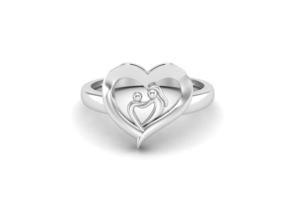 Mother & Child Heart Ring Symbolic Love - Sterling Silver