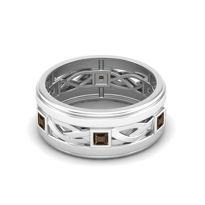 Smoky Quartz Interwoven Lattice Band Ring – Sterling Silver