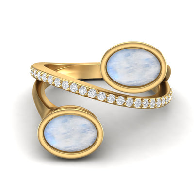 Moonstone Twin Bypass Ring - Sterling Silver