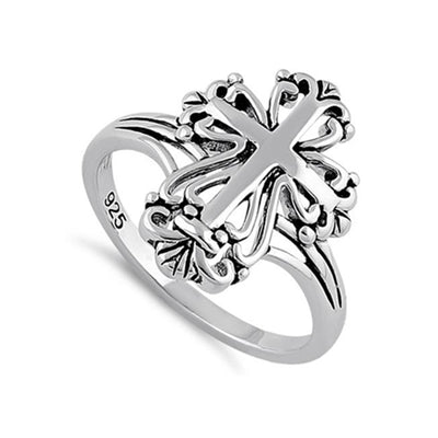 Ornate Scrollwork Cross Design Ring - Sterling Silver