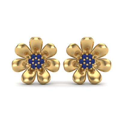 Blue Sapphire 0.40 Ct Round Floral Stud Earrings -14k Yellow Gold