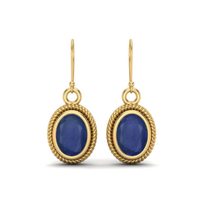 Blue Sapphire 2.00 Ct Vintage Rope Oval Drop Earrings - 14k Yellow Gold