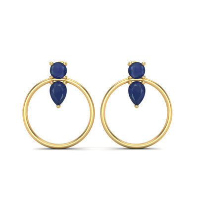 Blue Sapphire 1.52 Ct Pear Hoop Earrings - 14k Yellow Gold