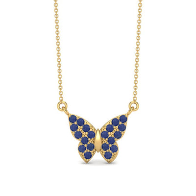 Blue Sapphire 3.00 Ct Round Cluster Butterfly Necklace – 14k Yellow Gold