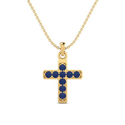 Blue Sapphire 1.35 Ct Round Cluster Cross Necklace - 14k Yellow Gold