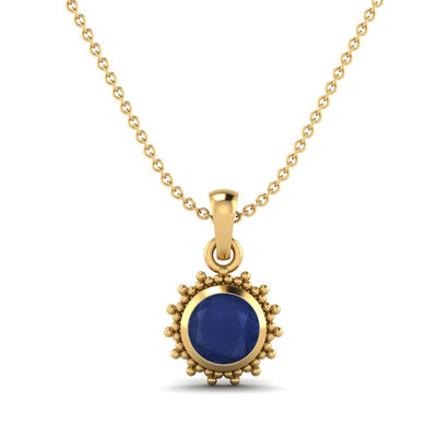 Blue Sapphire Round 1.20 Ct Vintage Beaded Halo Design Necklace -14k Yellow Gold