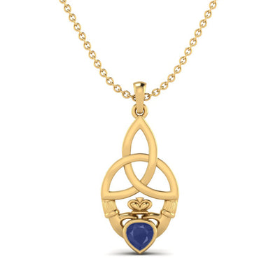 Blue Sapphire 0.50 Ct Heart Celtic Knot Claddagh Necklace - 14k Yellow Gold