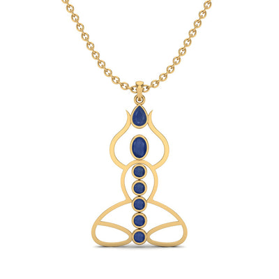 Blue Sapphire 3.15 Ct Round Chakra Yoga-Inspired Necklace - 14k Yellow Gold