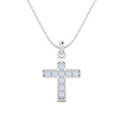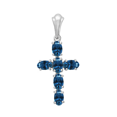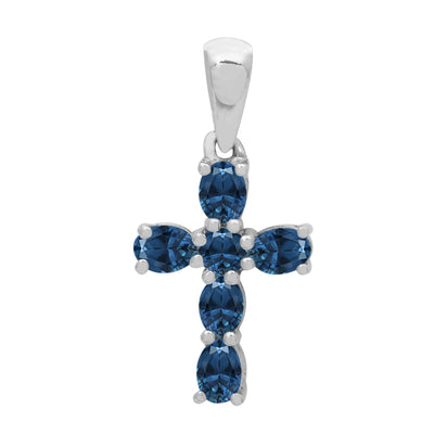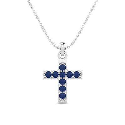Blue Sapphire Religious Cross Pendant- Sterling Silver