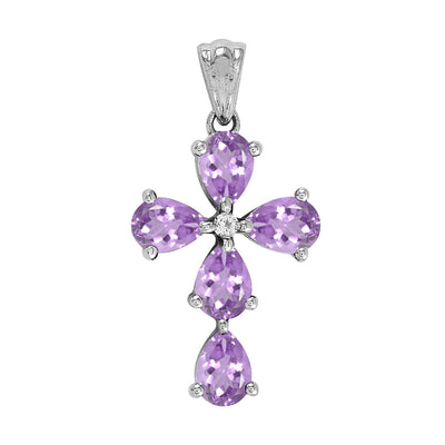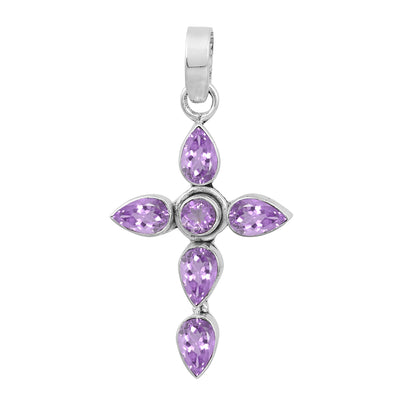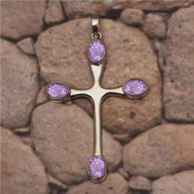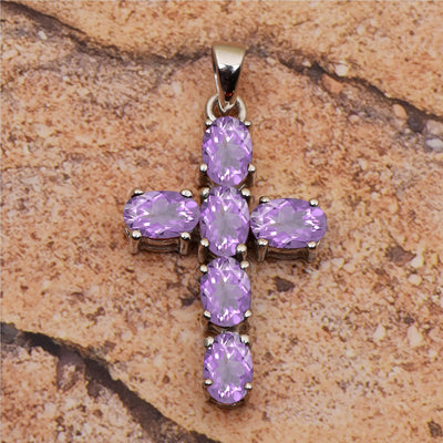 Multi Stone Christian Cross Pendant -Sterling Silver