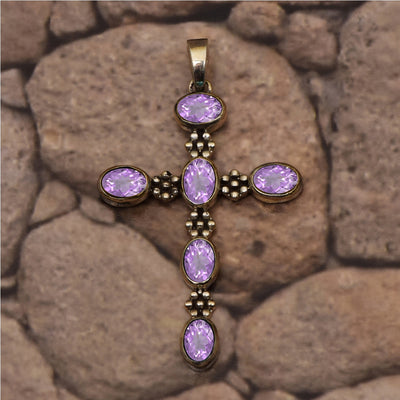 Multi Stone Ornate Cross Pendant -Sterling Silver
