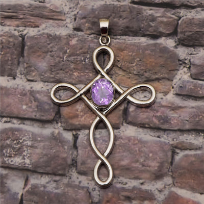 Multi Stone Infinity Loop Cross Pendant -Sterling Silver