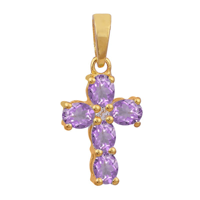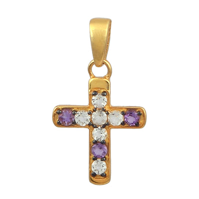 Multi Stone Religious Cross Pendant -Sterling Silver Gold Plated
