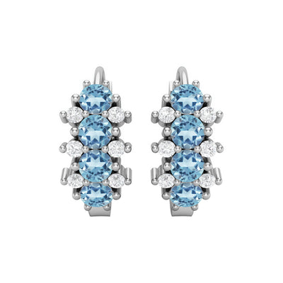 Aquamarine Double Row Huggie Hoop Earrings – Sterling Silver