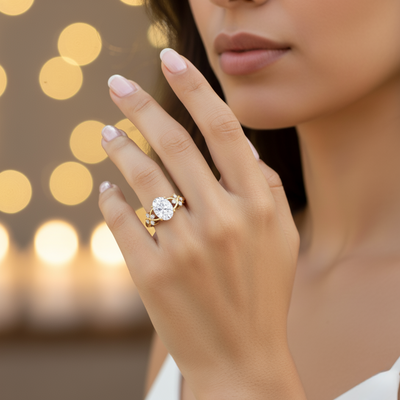 Moissanite Vintage Floral Accents Ring – Sterling Silver