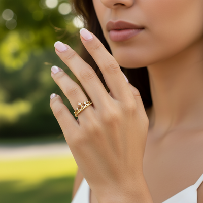 Moissanite Crown Beaded Band Ring – Sterling Silver