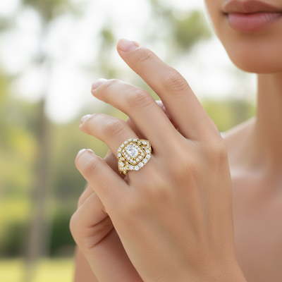 Moissanite Victorian-Inspired Ring – Sterling Silver