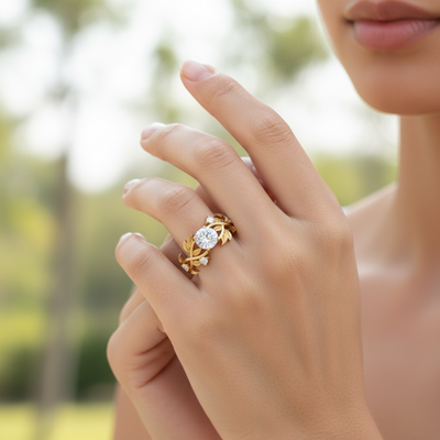 Moissanite Leaf Vine Inspired Ring – Sterling Silver