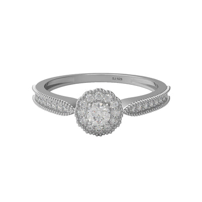Moissanite Double Halo Milgrain Design Ring – Sterling Silver