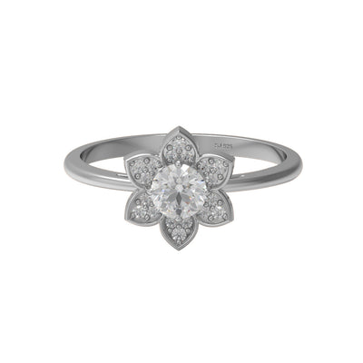 Moissanite Lotus Petal Floral Halo Ring – Sterling Silver