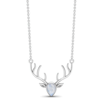 Moonstone Stag Head Necklace - Sterling Silver