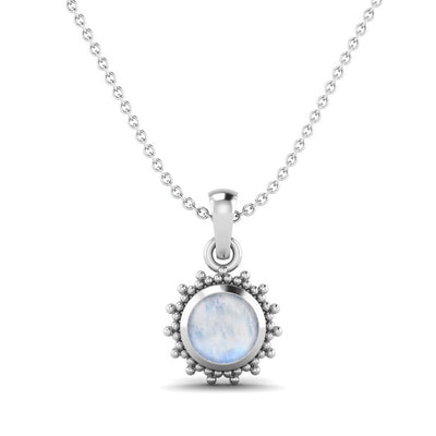 Moonstone Round Solitaire Pendant - Sterling Silver