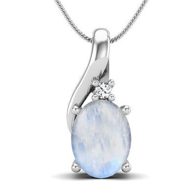 Moonstone Oval Solitaire Pendant - Sterling Silver