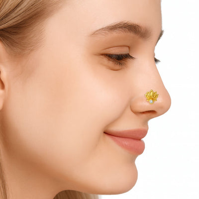White CZ Lotus Motif Nose Pin – Sterling Silver Gold Plated