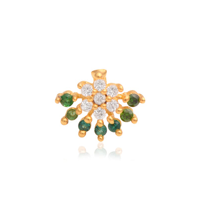 Green & White CZ Floral Nose Pin - Sterling Silver Gold Plated