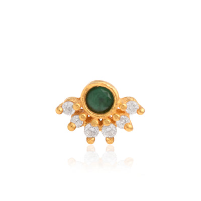 Green CZ Floral Nose Pin - Sterling Silver Gold Plated