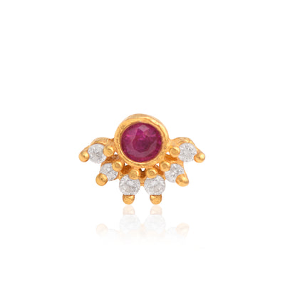 Red CZ Floral Nose Pin - Sterling Silver Gold Plated