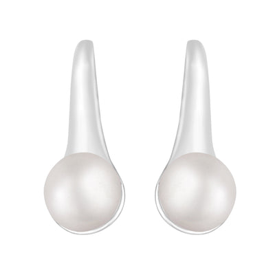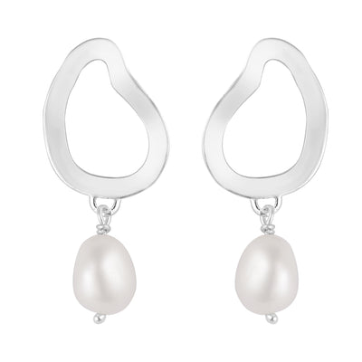 Pearl Abstract Hoop Dangle Earrings - Sterling Silver