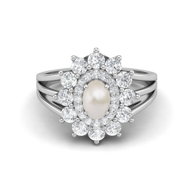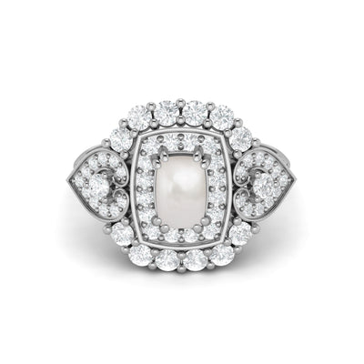 Pearl Cushion Halo Statement Ring - Sterling Silver