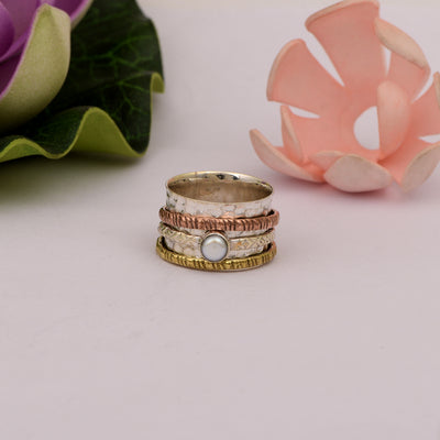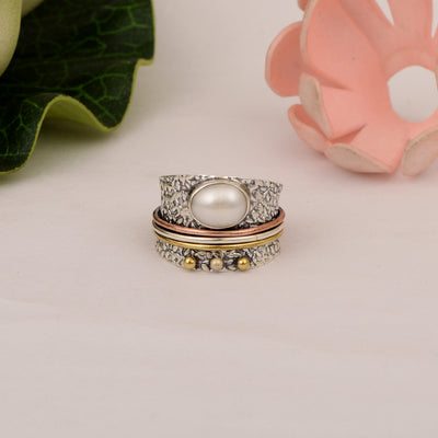 Pearl Triple Texture Design Spinner Ring - Sterling Silver