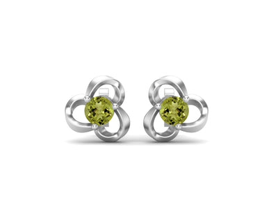 Peridot Elegant Petal Embrace Floral Stud Earrings - Sterling Silver