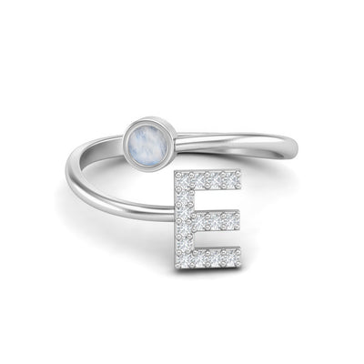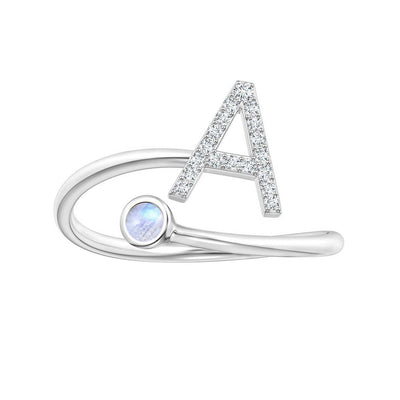 Moonstone Personalized Initial 'S' Design Ring - Sterling Silver