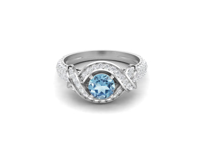 Blauer Topas gedrehter Halo- und Pavé-Bandring – Sterlingsilber