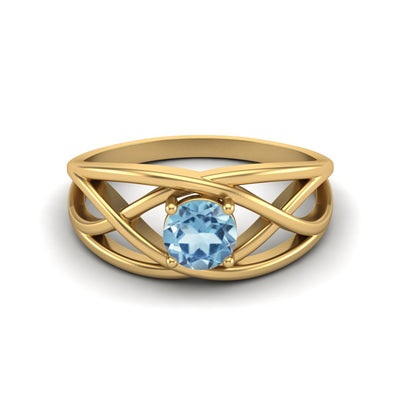 Blauer Topas Solitär-Ring mit keltischem Knoten – Sterlingsilber