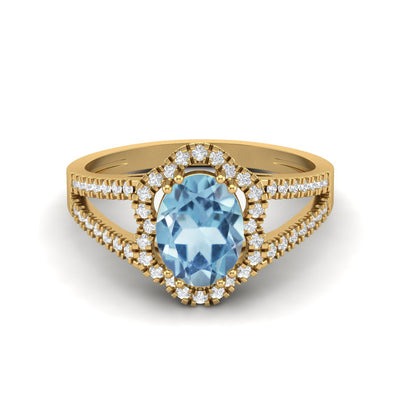 Blauer Topas Halo Verlobungsring mit geteilter Ringschiene - Sterlingsilber