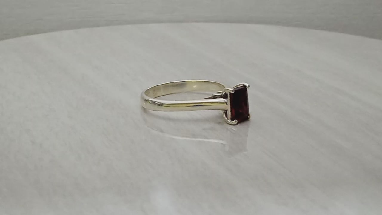 925 Sterling Silver Octagon Cut Garnet Solitaire Ring