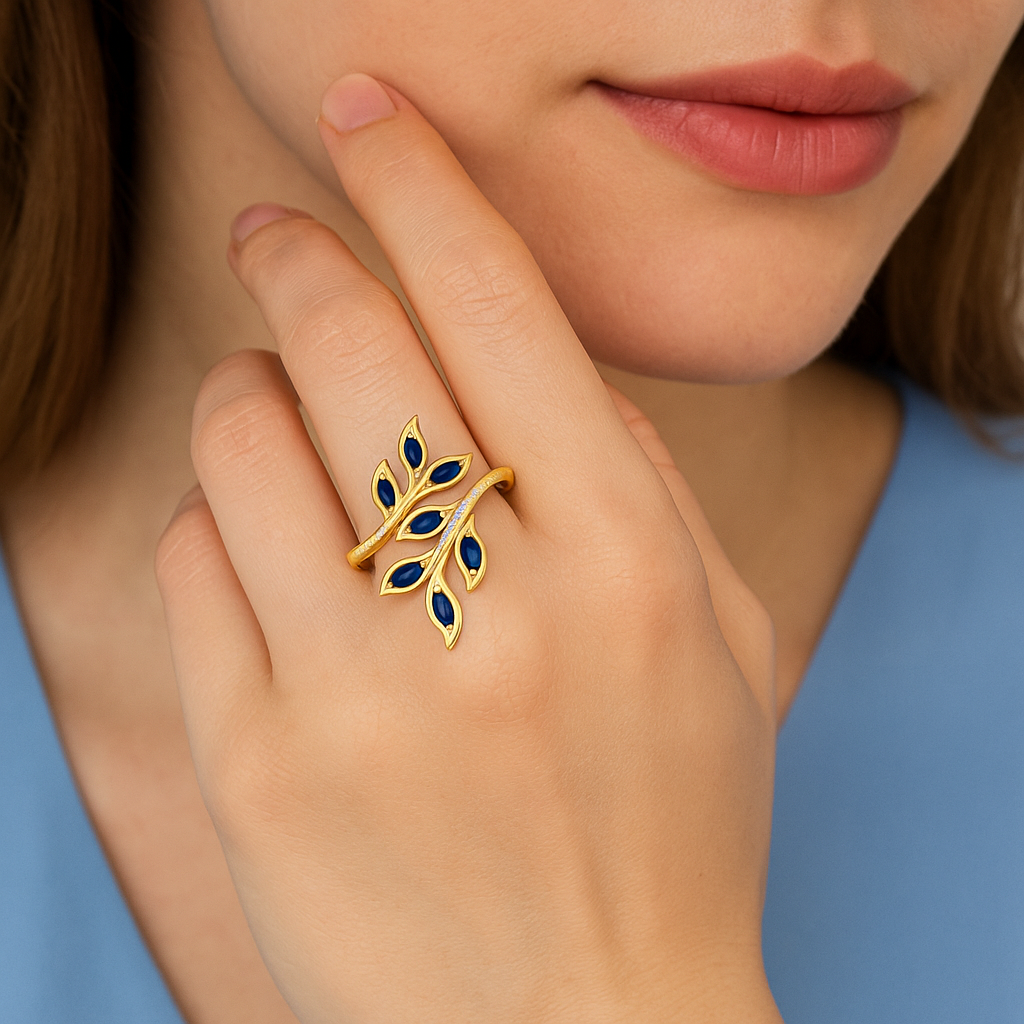 Anello Navratna - Anello in argento sterling e oro vermeil con nove pietre