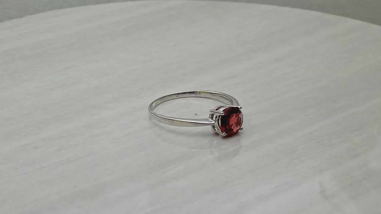Garnet 6mm Round Solitaire Ring- Sterling Silver